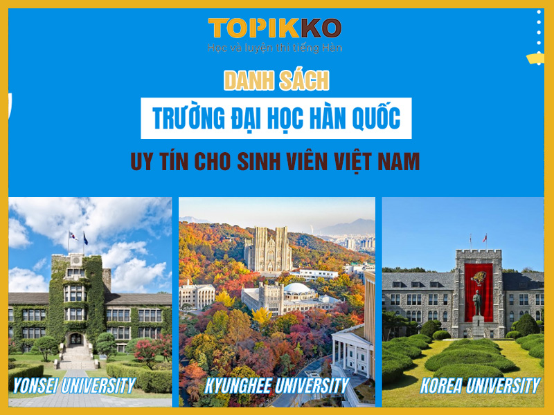 Hiện nay, Hàn Quốc là một trong những điểm đến du học được nhiều sinh viên từ Việt Nam yêu thích. Các ngôi trường tại Hàn Quốc thường có chất lượng giáo dục tốt, chi phí hợp lý và cơ hội nghề nghiệp sau khi tốt nghiệp. Việc lựa chọn một ngôi trường học phù hợp sẽ giúp bạn vững bước hơn trên hành trình du học Hàn Quốc. Dưới đây là danh sách một số trường đại học Hàn Quốc uy tín, được nhiều sinh viên Việt Nam lựa chọn, cùng với một số trường cao đẳng có chất lượng tốt mà bạn cần biết:
