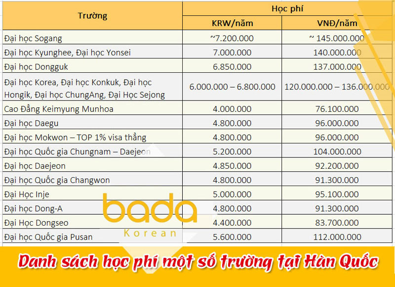 3. Học phí du học Hàn Quốc hết bao nhiêu tiền 1 năm?