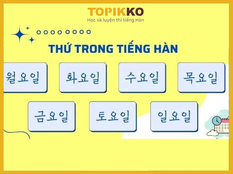 Các từ liên quan đến ngày thứ tiếng Hàn